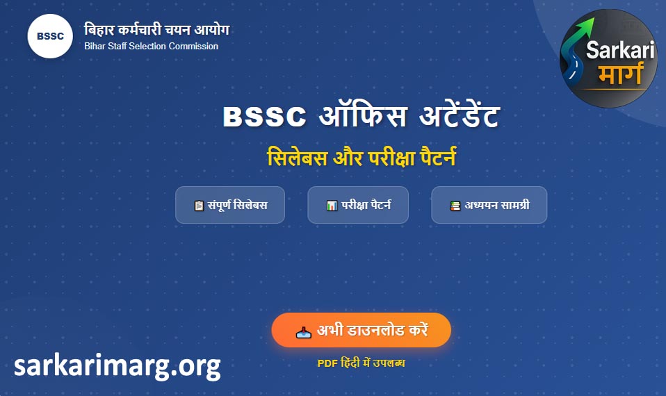 Bihar Staff Selection Commission (BSSC) ने Office Attendant भर्ती 2025 के लिए लिखित परीक्षा का Latest Syllabus और Exam Scheme जारी कर दिया है।